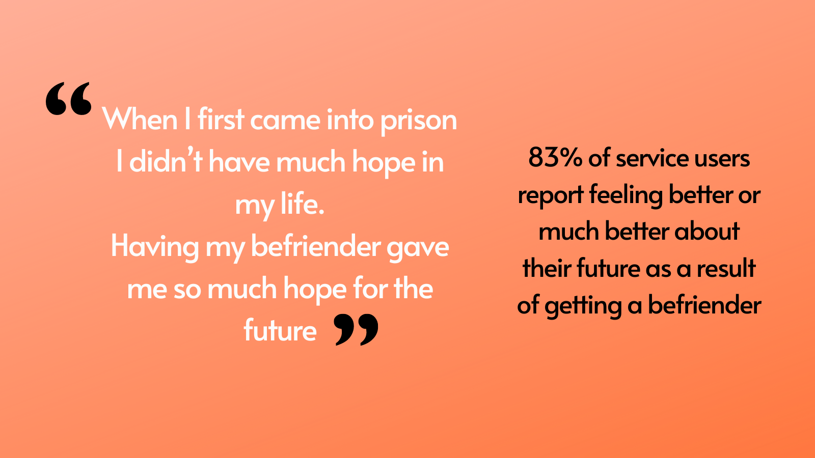 The report contains data supporting the impact of our work, and quotes from service users explaining, in their own words, what a difference their befriender has made